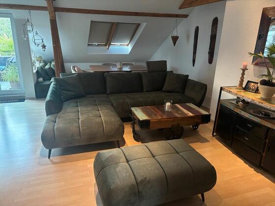 Teils Hohe Decken , freigelegtes Fachwerk, ein Kaminofen und eine ca. 3x3m große Loggia verleihen der Wohnung eine unglaubliche Gemütlichkeit.